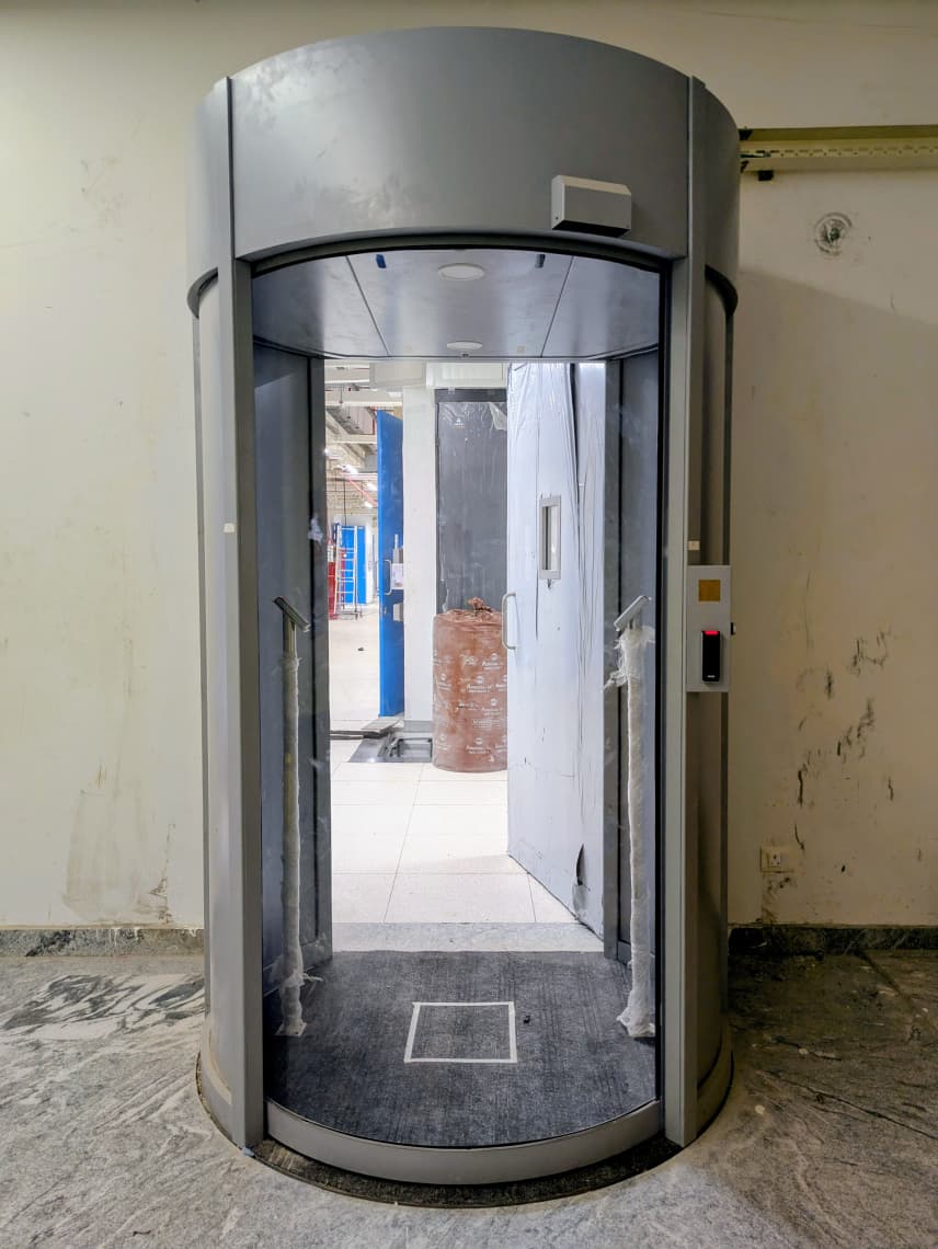 The Vigrel Combi is a compact, high-security portal that combines a curved sliding door on one side with an existing fire-rated swing door on the other. This smart retrofit solution transforms a standard doorway into a fully controlled mantrap, ensuring maximum protection while maintaining fire compliance. Using advanced load-cell and pressure-mat technology, the system reliably detects if more than one person attempts to enter at a time.